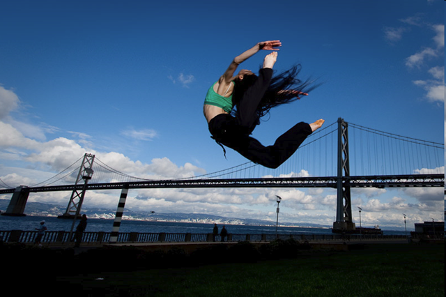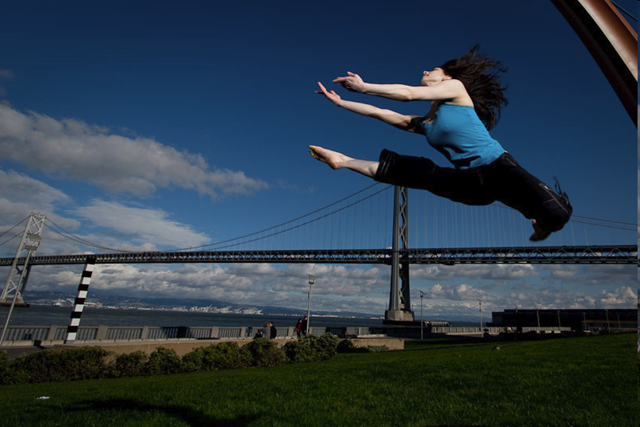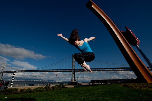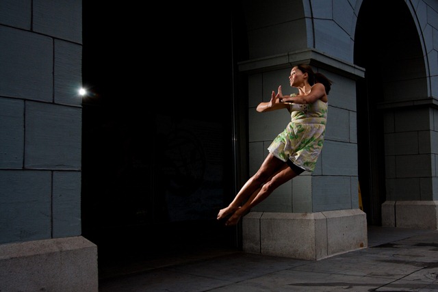 We planned on a out door photo shooting for Sunday Oct 24. But the weather turned ugly on San Francisco and forced us to shoot in Studio 2 at Lines Dance Center. It was dark inside. I debated about using flash vs using available (low) light. Looking around the studio, the huge window facing market st provides such a beautiful background and a even backlight, making it very hard to resist.
